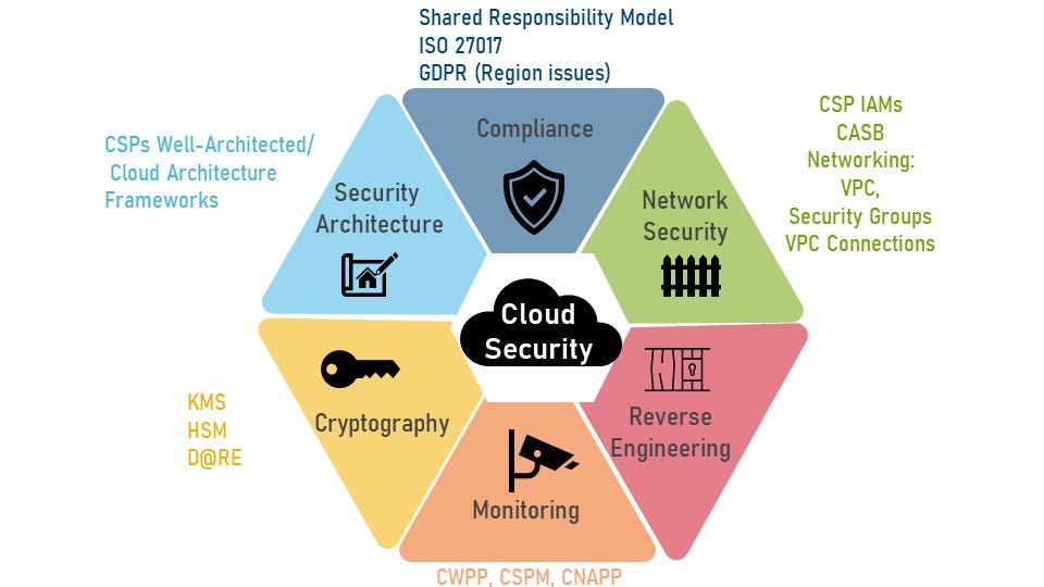 La sécurité est une préoccupation majeure dans le cloud, mais elle est intrinsèquement une responsabilité partagée. Le fournisseur est responsable de la sécurité du cloud (l'infrastructure, le matériel, le réseau, la virtualisation), tandis que le client est responsable de la sécurité dans le cloud (les données, les applications, la configuration). Les principes fondamentaux de la sécurité de l'information sont la Triade CIA : Confidentialité, Intégrité, Disponibilité. À cela s'ajoutent la Législation, la Réversibilité et la Preuve/Traçabilité. Parmi les éléments clés d'une architecture cloud sécurisée :